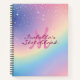 A trendy sparkling colored notebook with mixed turquoise, pink and mauve and light yellow glitter with many little stars. You can personalize this notebook by adding your name and initial.