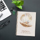 A beige background. Decorated with a watercolored sea shell, scallops with a pearl inside. Personalize and add a name and text. For school, work as a sketchbook, diary and journaling.