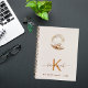 A beige background. Decorated with a watercolored sea shell, scallops with a pearl inside. Personalize and add a name, monogram letter and a year. The name is written in white with a large modern hand lettered style script with swashes. The monogram letter in gray. For school, work as a sketchbook, diary and journaling. To keep the swashes only delete the sample name, leave the spaces or emoji's in front and after the name