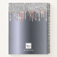 A silver metallic looking background with rose gold, pink and faux silver glitter drips, paint dripping look. Personalize and add a name, monogram letter and a title. The name is written in white with a large modern hand lettered style script with swashes. Perfect for school, as a sketchbook or for taking notes.