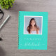 A turquoise colored background. Personalize and add your own photo. Add a name and a title. The title is written with a modern hand lettered style script with swashes. White colored letters. A notebook for sketching your kids, for for your home office.