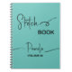 Personalized Teal Aqua Blue Black Sketchbook with Your Name in Elegant Handwritten Script Font Typography