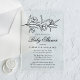 Celebrate the upcoming arrival in style with our elegant floral baby shower invitations. This timeless design features delicate black sketched flowers and leaves gracefully adorning the top, set against a frosted or transparent acrylic background for a modern touch. Personalize the invitation with the mother-to-be’s name and shower details in classic black lettering below. Perfect for a sophisticated and memorable baby shower, these botanical invitations are sure to impress your guests.