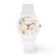 I only have one complaint. I ordered the watch with clear case and strap, and what was sent was white case and strap. I'm going to keep it because 1) it looks very nice in white, and 2) it would take too long to get a replacement made and sent in time for my occasion. Aside from the mix up with the color, the watch does look very good in white. The purple dial is actually sparkly which did not show in the online images. That was a nice surprise. If you like Swatch watches this is very similar to those. It's 33.6mm in diameter, 10.5mm thick, and 40.6mm lug to lug. Stainless steel case back says 3ATM/30m WR, so no swimming or showering or submerging this one. If you like Woodstock, this is a great choice.