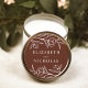 Elegant floral wedding stickers featuring white sketched flowers and leaves with a brown background. Personalize the sketched floral wedding stickers with your names. The floral stickers are perfect for sealing wedding envelopes, wedding favors, and more! Designed to coordinate with our Sketched Floral wedding collection.