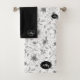 A beautiful pattern of hand drawn flower outlines in shades of gray is used to create the pieces of this modern collection. The striking towel set shown here also features optional handwritten script text in white on a black background. Search ID939 to see all the products in this design set.