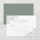 Elegant floral wedding RSVP cards featuring sage green sketched flowers and leaves at the corners with a white background. Personalize the botanical wedding RSVP cards with your desired RSVP date and custom accepts/declines wording in classic sage green lettering. Designed to coordinate with our Sketched Florals wedding collection.