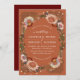 A unique take on floral wreath with touches of peach and maroon over a tan taupe background (customize the background color to any of your choice); original illustration by Becky Nimoy.