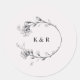 Sketched Modern Floral Monogram Wedding Classic Round Sticker