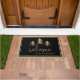 Perfect for the holidays, winter time, or your woodland home or cabin, this cute forest themed doormat features "welcome" in handwritten calligraphy script, with a trio of hand sketched pine tree illustrations. Personalize with your family name.