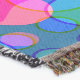 A quality printed throw has its advantages. This is a much finer weave throw than its loopier cousins, and though lighter, it is worth the investment for custom room accessorizing. The back is much prettier than the typical brown, and the fringe on the long sides very vivid, the selvage nicely done. Before photographing, I washed the throw in cold water, delicate, with a thicker woven throw the same size. On tumble dry low, this throw was dry in half the time as the other. This is a very practical quality if you use throws for furniture covers or to wrap up in frequently. The sleekness of the fabric makes it a great layer for accenting or protecting without the feeling of sitting on too much stuff. Perfect for napping or when you feel a light chill coming on. The color printing is beautiful and on this fabric, matched the design and color of my Photoshop image. This is an advantage for blending room fabrics and colors. The fringe on the short sides prints the colors from the design image and therefore varies from the side fringe. I streaked a white fractal line through the plaid pattern to give the illusion of weaving. This printed as crisp as an illusory thread, and put some white in the short side fringe, showing another advantage of print vs loomed- for artistic purposes, line lines, detail, and color integrity can be planned and preserved. My loomed throws have color limitations and more of a needlepoint texture. Print throws reproduce an exact image. The throw felt a little stiff straight out of the package, but this went away in the first delicate wash. Of course I searched the wash water for ink or bleeding and there was none.
