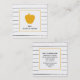 A business card for teachers featuring a black and white thin stripe pattern on front and back. Personalize the front with your name under golden yellow apple. Personalize the back with contact info.