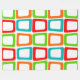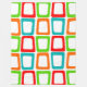 This large fleece blanket has a mid-century modern design of repeating skewed rectangles in red, orange, green, and turquoise.