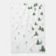 A tea towel featuring a watercolor print with colorful skiers and snowboarders on a snowy mountain slope.