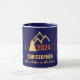 Handsome composition of a man mountain or downhill skier against the background of colorful circle. A text "BIG SKY - 45°16'12"N 111°17'59"W - MONTANA, SKIING MAKES ME HAPPY" of golden-yellow color goes around the image. A silhouette image of mountains and a spruce tree, texts "2024", "CHRISTOPHER", "Life is better on the slopes!" are located in the middle. All images and texts are customizable. You can easily change them in accordance with your needs and wishes. Beautiful coffee or tea mug for home or office. Winter sports design. Popular skiing places in the United States of America. This version is for black or dark color backgrounds. The version for white or light color backgrounds is also available. The respective versions for women are waiting for you. You can transfer this design to a variety of products. Have a good coffee break!