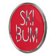 Ski bum text decorated with skis is a fun skiing gift design for downhill, cross country and twin tip skiers.
