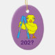 A yellow chick holding skis and surrounded by snowflakes is a funny gift design for skiing friends and family. Date can be changed.