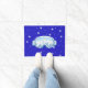 Ski Goggles with mountain reflection. Ski goggles and Snowflake Pattern on blue background. Playful sport winter design.