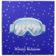 Ski Goggles with mountain reflection. Ski goggles and Snowflake Pattern on blue background. Playful sport winter design.
