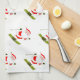 Merry Christmas holiday towel featuring Santa skier pattern.