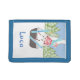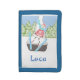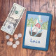 Teach your child to manage money with this cute wallet featuring our Swiss cartoon cow named Snowbell . Today she's practicing her ski jumping skills . Make sure to personalize it with your kid's name :)