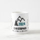 Beautiful composition of a man mountain or downhill skier against the background of the colorful circle. The text "KILLINGTON - 43°37'34"N 72°4' 53"W - VERMONT, SKIING MAKES ME HAPPY" of the black color goes around the image. A silhouette image of mountains and a spruce tree, texts "2024", "CHRISTOPHER", "Life is better on the slopes!" are located in the middle. All images and texts are customizable. You can easily change them in accordance with your needs and wishes. Beautiful coffee or tea mug for home or office. Winter sports design. Popular skiing places in the United States of America. This version is for white or light-colored backgrounds. The version for black or dark-colored backgrounds is also available. The respective versions for women are waiting for you. You can transfer this design to a variety of products. Have a good coffee break!