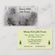 This business card advertises a ski resort. The lovely image on the front represents the essence of winter. Evergreen trees stand out against the bare branches of deciduous trees on a frosty hillside. Every branch and needle is covered with snow, ice and frost. The full effect is a painterly impressionistic composition of the season. The back has all your pertinent information ready to be customized to fit your personal situation.