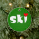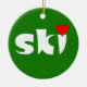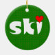 Ski text with a heart dotting the i in the word ski is a fun gift design for skiers, ski instructors and lovers of winter sports at birthdays and holidays.