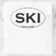 This SKI oval sticker denotes the sport of snow skiing. Across North America, skiing is popular wherever winter snowfalls create favorable conditions. In some areas, enthusiasts ski on artificial snow.