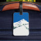 This modern luggage tag features the winter landscape of a ski resort. This beautiful scene shows snowy mountains, and a ski lift on an intense blue sky. Pine trees can be seen scattered around. This eye-catching yet elegant design is great for a ski lover or a ski enthusiast.