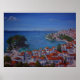 From an original painting in acrylics on canvas (size 102cm x 76cm) by Yvonne Ayoub, showing Skiathos old port, the Bourtzi Islet and the red tiled roof tops of the Old town