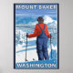 Skier Admiring - Mount Baker, Washington - Vintage Travel Poster was created in 2007. This image depicts scenes from Mount Baker, WA.