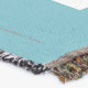 A quality printed throw has its advantages. This is a much finer weave throw than its loopier cousins, and though lighter, it is worth the investment for custom room accessorizing. The back is much prettier than the typical brown, and the fringe on the long sides very vivid, the selvage nicely done. Before photographing, I washed the throw in cold water, delicate, with a thicker woven throw the same size. On tumble dry low, this throw was dry in half the time as the other. This is a very practical quality if you use throws for furniture covers or to wrap up in frequently. The sleekness of the fabric makes it a great layer for accenting or protecting without the feeling of sitting on too much stuff. Perfect for napping or when you feel a light chill coming on. The color printing is beautiful and on this fabric, matched the design and color of my Photoshop image. This is an advantage for blending room fabrics and colors. The fringe on the short sides prints the colors from the design image and therefore varies from the side fringe. I streaked a white fractal line through the plaid pattern to give the illusion of weaving. This printed as crisp as an illusory thread, and put some white in the short side fringe, showing another advantage of print vs loomed- for artistic purposes, line lines, detail, and color integrity can be planned and preserved. My loomed throws have color limitations and more of a needlepoint texture. Print throws reproduce an exact image. The throw felt a little stiff straight out of the package, but this went away in the first delicate wash. Of course I searched the wash water for ink or bleeding and there was none.