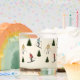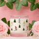 Destei's original hand-illustrated watercolor pattern featuring women skiing among green fir trees. Each skier wears a different color jacket including red, yellow and teal, bringing energy and life to the winter scene. This design captures the joy of outdoor winter activity and evokes a seasonal, festive feel. There are also two personalizable text areas for a custom greeting such as "Merry Christmas" together with names or other custom text. Ideal for anyone seeking a stylish holiday pattern that reflects a love of movement, nature and the winter season.