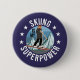 Funny winter ski sports illustration, showing mountain graphics and a woman on skis, and the saying: skiing is my superpower and little stars. This is the perfect gift for everyone, who loves skiing, mountains, and winter sports.