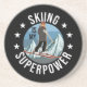 Funny winter ski sports illustration, showing mountain graphics and a woman on skis, and the saying: skiing is my superpower and little stars. This is the perfect gift for everyone, who loves skiing, mountains, and winter sports.