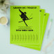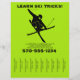Promote your ski lessons with this eye-catching flyer. It features a bold black silhouette style graphic of a skier performing a ski track and black lettering set against a bright lime green background and is designed with a tear-off stripes style that's perfect for promoting your business on community bulletin boards at coffee shops and ski slopes. You will need to use a pair of scissors to cut between each of the strips.