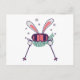 Skiing Rabbit with ski poles ski goggles and scarf Postcard