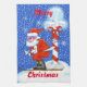A skiing Santa at the North Pole makes up this Christmas kitchen towel. Customizable so you can add your own text and change the background color. Bring in the holidays with this festive design.