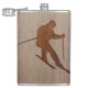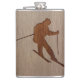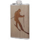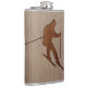 Skiing silhouette engraved on wood design hip flask