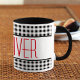 A classic black and white buffalo check pattern, handle and inside is black with modern skinny font name in red. Easily change name, add text or remove to make it yours using the Template provided This is an 11oz. combo color beverage mug, also available in 15oz. size. Choose from 9 colors for handle and inside, or 5 colors for 15oz. See "About This Product" at side for additional information.