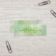 Modern slim style customizable business cards in a warm pastel lime green and lemon yellow swirling clouds pattern with swirling initials behind your name. contact and business info on the back of card.