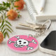 Skull and cross bones keychain. Comical key chain for kids and adults. Cute girl design pink design.