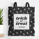 Get ready for spooky season with this custom all-over print tote bag featuring a bold skull and crossbones pattern and retro “Trick or Treat” text. Personalize it with your child’s name or monogram, and customize the colors and fonts to match their Halloween style. Perfect for trick-or-treating, carrying party goodies, or using as a festive reusable bag all October long.