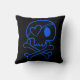 A neon blue skull and crossbone illustration with a heart shaped eyepatch. Black background.