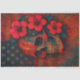 Skull and Hibiscus on Flag Red Decoupage Paper