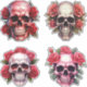 Set of four skulls with roses on their heads, digital art gothic art, digital illustration, made of flowers.Life and death, strength and fragility, and beauty in unexpected places.