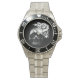 Has heft and feel of expensive stainless steel quartz watches. Good band with safety catch. I removed links, which is easy because engraved arrows show direction to push the linking pins. As always by this seller, the image (a railroad logo) is a perfect reproduction of my emailed image, and is precisely spaced and aligned.
