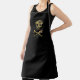 Great color and even though I ordered the kid size, it covers well enough to use during the holidays. I am not a big woman and prefer a shorter apron. I stand 5"6" and the length of the garment goes to mid-thigh. The tie straps fit well at my waist and even though there is no neck strap adjustment, the opening is plenty big enough. I am happy with the size and fit. I am sharing my apron with my 10 year old grandson, too! The color is vibrant and looks good, as shown on the website. The stitching looks strong and reinforced. Photographed is front side and back side of the apron, reinforced straps and coloring. My phone camera may not be the best at showing the details.