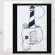 My husband created this piece using ink pens. It perfectly embodies the sense of being one place and wishing we were somewhere else. The skull features cross-hatching details long the gumlines and temples for impressive intricacy and, well... it's also sawed off. Popping up out of the sawed-off skull are a lighthouse, a rocky cliff, a palm tree, and what appears to be a little surf shack or boathouse. INCREDIBLE! Despite being six feet under, this skull's still in the sunshine... at least, in his mind.